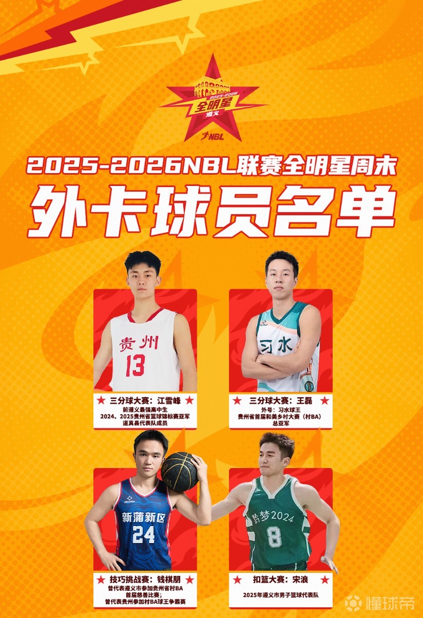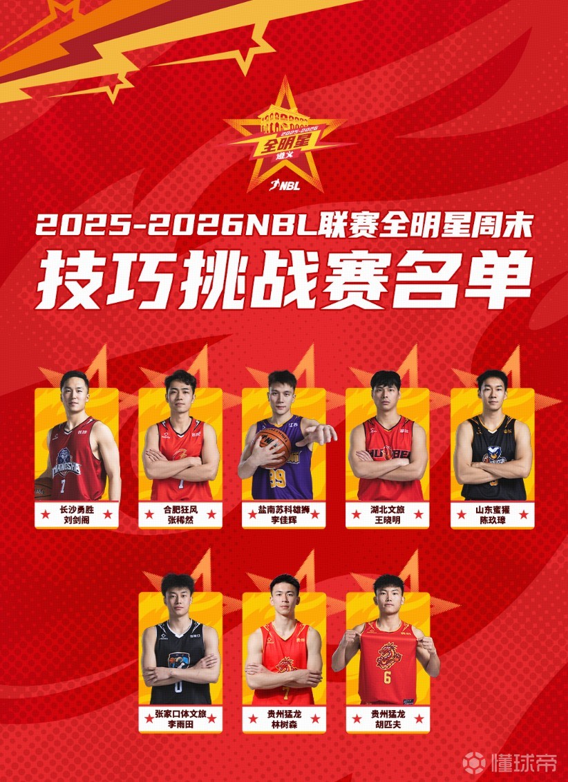 NBL官方公布2025-26赛季全明星正赛、单项赛名单。上海玄鸟球员赖益烨虽然本赛季因伤未参加任何比赛,但替补入选正赛大名单。